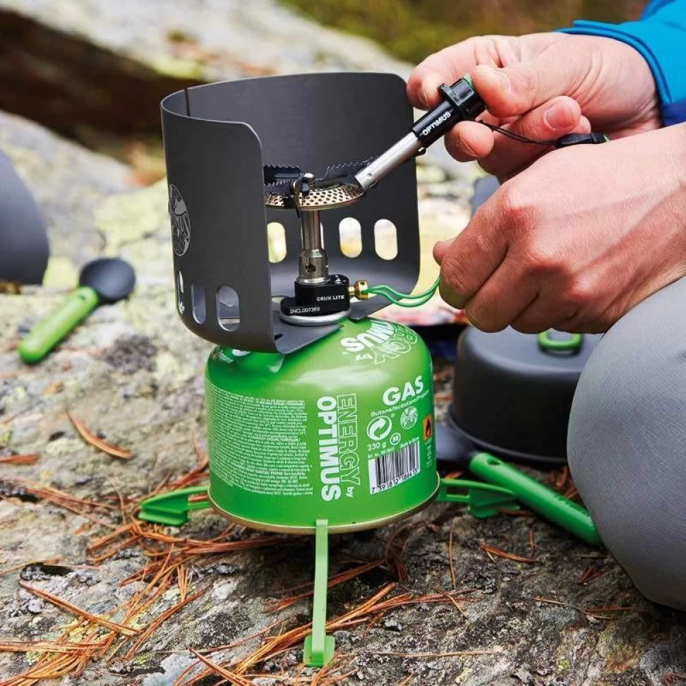 Le pare-vent Optimus Clip On Windshield est un pare-vent pour réchaud à gaz. C’est un pare-vent emboîtable. Il est compatible avec les cartouches de gaz EN417 et tous les réchauds de randonnée non déportés. Il s’utilise avec les popotes et casseroles d’un diamètre jusqu’à 11 cm (modèles classiques ou à échangeur thermique). Dimensions : 10 x 11,5 x 9 cm. Matière : aluminium anodisé. Poids : 87 g.