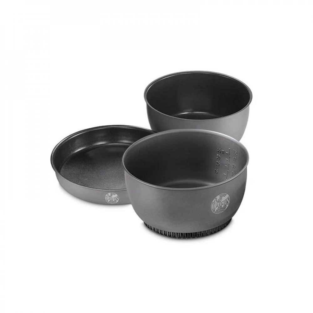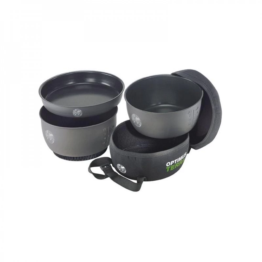 Le set de cuisson Optimus Terra HE est une popote optimisée intégrant 5 éléments dont une housse en néoprène, une poignée, deux casseroles graduées et une poêle à frire. La poêle et les casseroles sont en aluminium dur anodisé, matière anti-adhésive et antichocs. La grande casserole dispose d’un système d’optimisation de la cuisson. Un achat idéal pour les expéditions, bivouacs et treks.